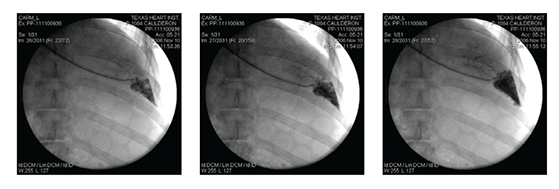 Figure 1 A catheter positioned in the hepatic vein; time sequence of the radio-opaque dye injected into the targeted area.